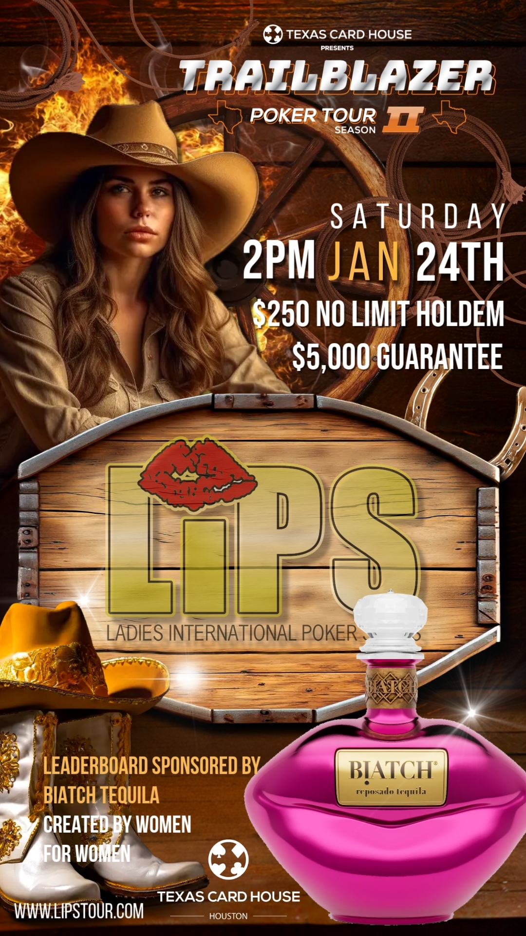 Jan 24th 2PM $250 NLHE PLUS a BIATCH Tequila bottle for the winner!!